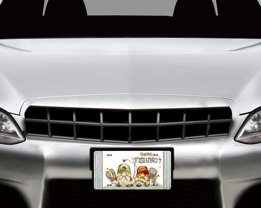 Gone Fishing Gnomes Aluminum Vanity License Plate Car Accessory Decorative Front Plate