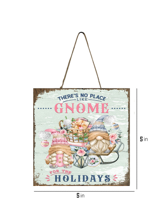 There's Gnome Place Like Home Pink and Blue Printed Handmade Wood Christmas Ornament Mini Sign