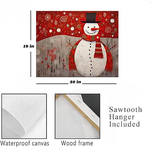 20x16 Minimalist Christmas Red Snowman Wall Art Canvas Print