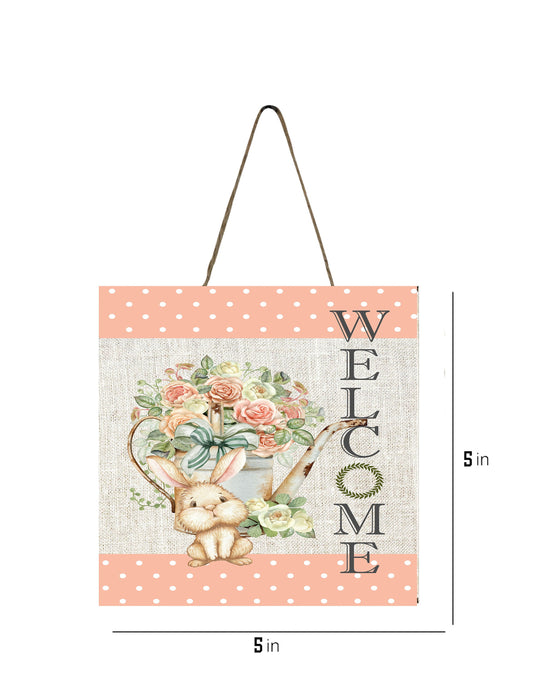 Peach Bunny Welcome Printed Handmade Wood Mini Sign