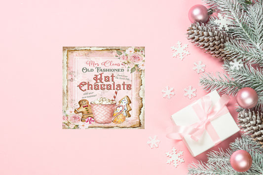 Pink Mrs. Claus Hot Chocolate Version 1 Printed Handmade Wood Christmas Ornament Mini Sign