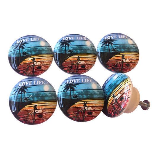 Set of 6 Love Life Beach Print Wood Cabinet Knobs