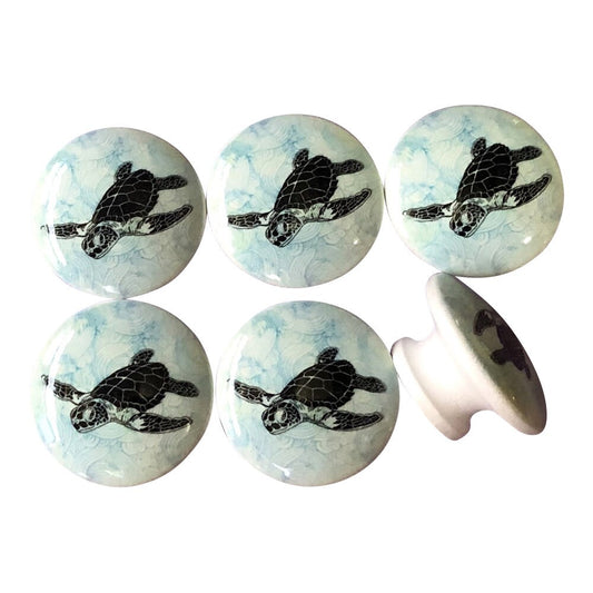 Set of 6 Sea Turtles Wood Cabinet Knobs, Cabinet Knobs and Draw Pulls, Kitchen Knobs, Beach House Decor