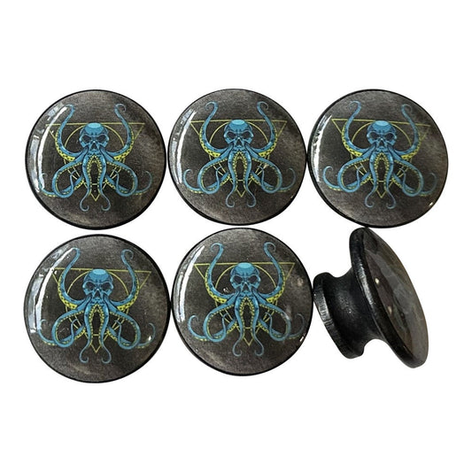 Set of 6 Octopus Skull Wood Cabinet Knobs, Drawer Knobs and Pulls, Kitchen Cabinet Knobs, Beach House, Beach Theme, Ocean