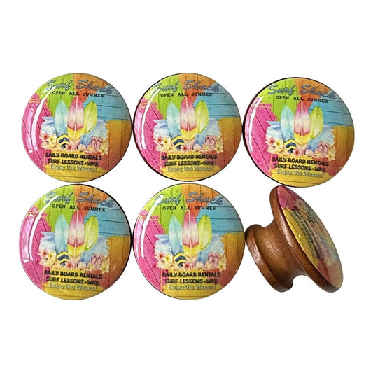 Set of 6 Lucky Beach Print Wood Cabinet Knobs