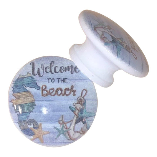 Set of 6 Welcome to the Beach Seahorse Wood Cabinet Knobs