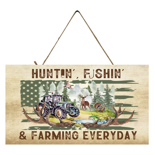 New Release Huntin' Fishin' and Farming Twisted R Design Farmhouse Wood Sign, Wood Decorative Wall Signs Wood Wall Decor Hanging Wall Sign