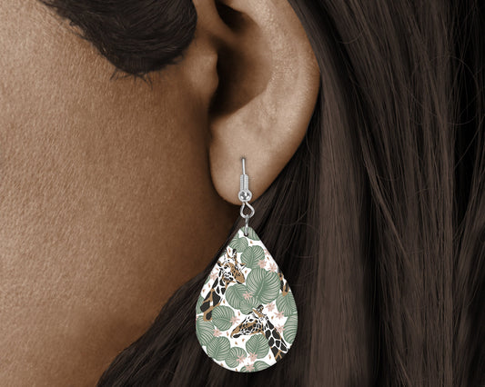 New Release Giraffe and Palm Leaves Tear Drop Dangle Printed Earrings Jewelry Handmade