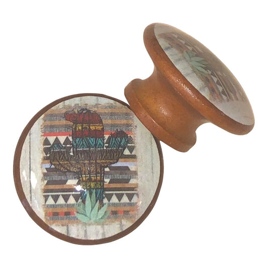 Set of 6 Aztec Cactus Wood Cabinet Knobs