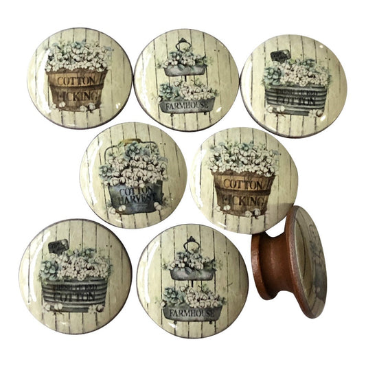 Set of 8 Cotton Pickin' Farm Print Wood Cabinet Knobs, Kitchen Knobs, Draw Knobs, Farmhouse Style