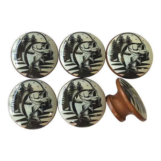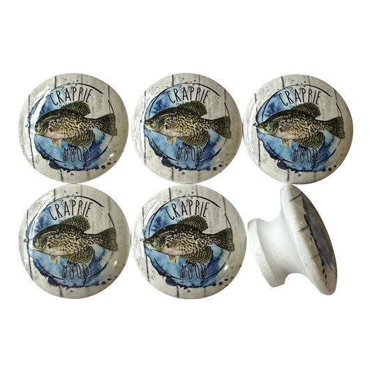 Set of 6 Crappie Mood Fishing Wood Cabinet Knobs, Kitchen Cabinet Knobs, Draw Knobs, Man Cave Cabin Decor,