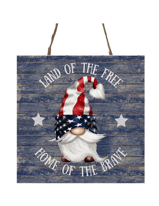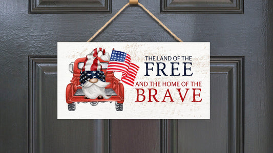 Land of the Free Home of the Brave Gnome Printed Handmade Wood Sign