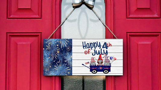 Happy 4th of July Gnome Wagon Handmade Wood Sign