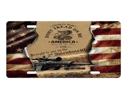 2nd Amendment American Flag Aluminum Front License Plate and Car Coaster Set