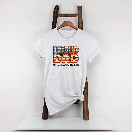 Proud Dad, T Shirt, Amazing Kids, American Flag Tshirt, Graphic T's 100% Cotton Black White or Gray, Tee