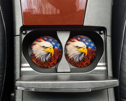 New Release, American Eagle Aluminum Front License Plate and Car Coaster Set, Vanity Plate, Car Accessories