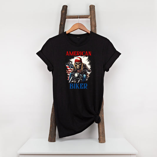 New Release, American Biker T shirt, Patriotic Motorcycle Tshirt, Graphic T's 100% Cotton Black, Tee