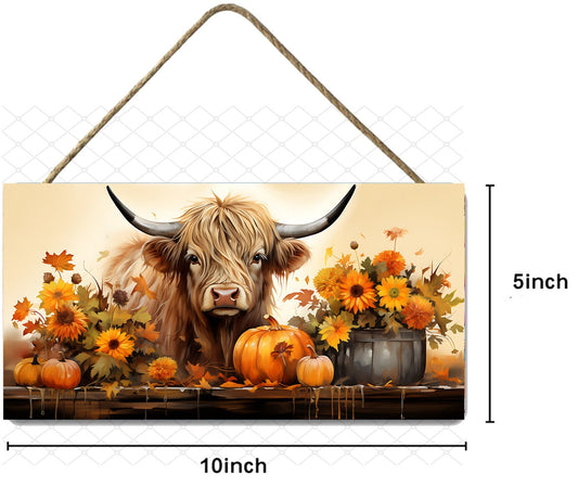Fall Highland Cow Decor Printed Handmade Wood Sign, Wreath Sign, Door Hanger, Fall Wall Sign