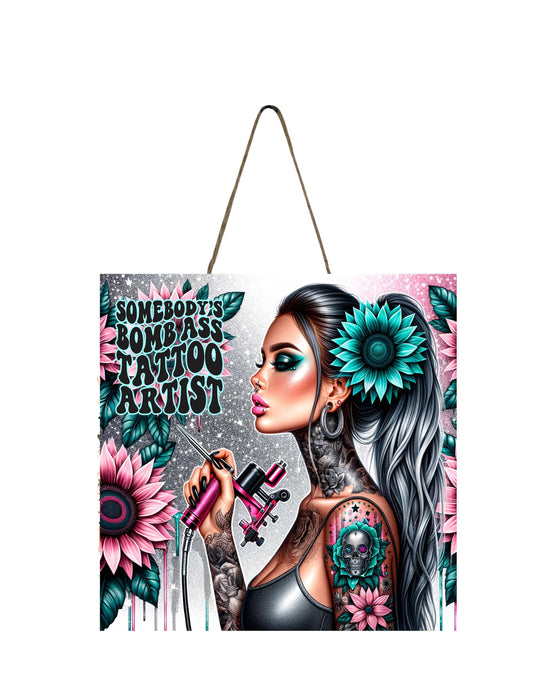 Somebody's Bomb Ass Tattoo Artist Printed Handmade Wood Mini Sign