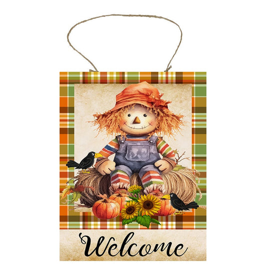 Fall Decor, Fall Sign, Scarecrow Welcome Farmhouse Decor Printed Handmade Wood Sign Door Hanger Sign