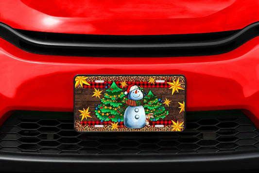 Christmas Tree Snowman Holiday Vanity Aluminum Front License Plate