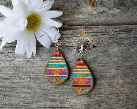 Penny Aztec Tribal Print Tear Drop Dangle Printed Earrings Jewelry Handmade