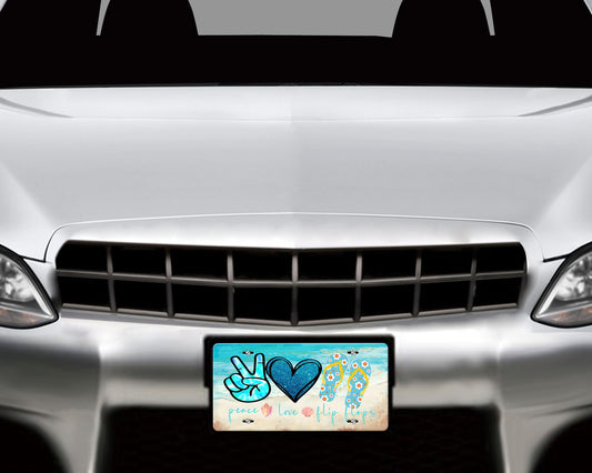 Peace Love Flip Flops Aluminum Front License Plate, Vanity Plate, Car Accessory
