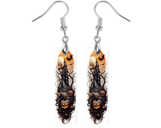 Haunted Castle Halloween Printed Wood Dangle Earrings Hypoallergenic Jewelry Handmade