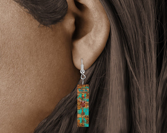 Western Take No Bull Printed Wood Dangle Earrings Hypoallergenic Jewelry Handmade