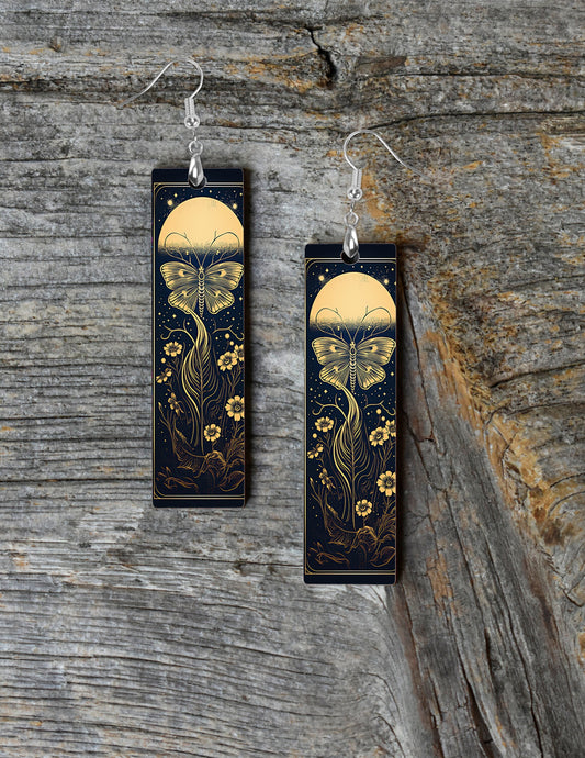 Moon Glow Butterfly Printed Wood Dangle Earrings Hypoallergenic Jewelry Handmade