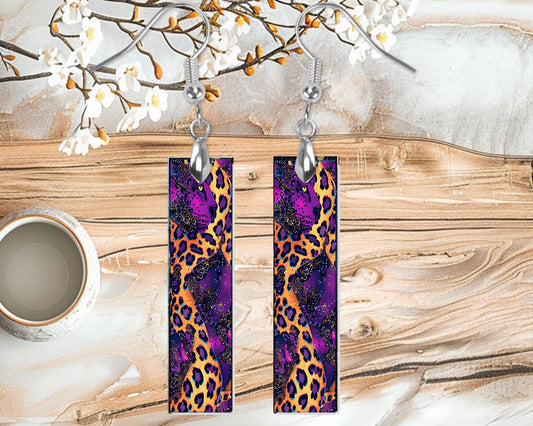 New Release Purple and Leopard Print Printed Wood Dangle Earrings Hypoallergenic Jewelry Handmade