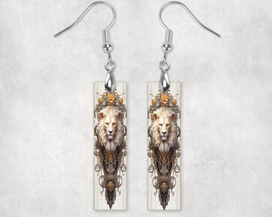 New Release Rococo Lion Printed Wood Dangle Earrings Hypoallergenic Jewelry Handmade