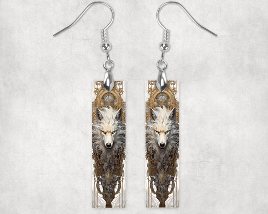 Rococo Wolf Earrings, Printed Wood Dangle Earrings Hypoallergenic Jewelry Handmade