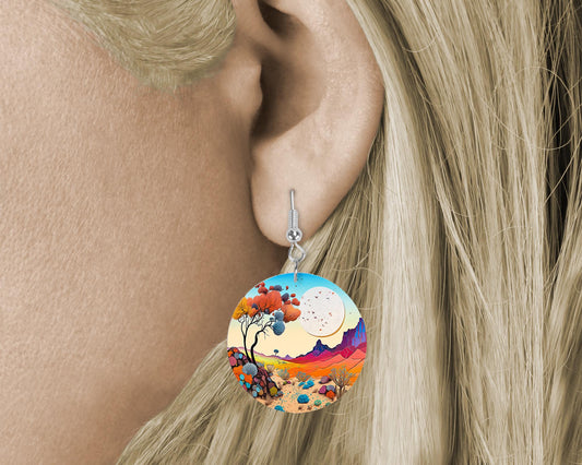 Desert in Color Round Wood Dangle Earrings Hypoallergenic Jewelry