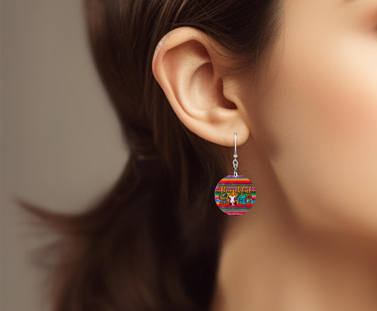Thankful Mama Serape Round Wood Dangle Earrings Hypoallergenic Jewelry
