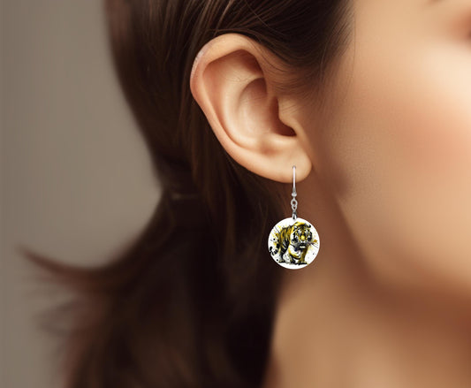 Full Body Tiger Round Wood Dangle Earrings Hypoallergenic Jewelry