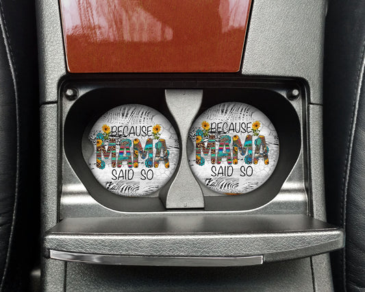 Set of 2 Because Mama Said So Sandstone Car Coasters