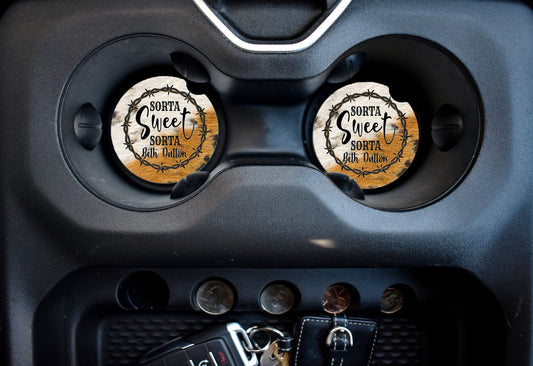 Set of 2 Sorta Sweet Sorta Dutton Sandstone Car Coasters