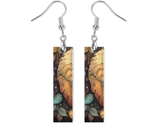 Fall Feather Printed Wood Dangle Earrings Hypoallergenic Jewelry Handmade