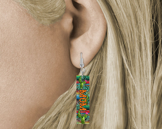 Cactus Mom Print Western Printed Wood Dangle Earrings Hypoallergenic Jewelry Handmade