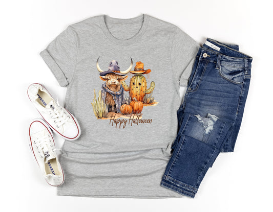 Happy Halloween Highland Cow T Shirt, Tshirt, Graphic T's 100% Cotton Black White or Gray, Tee, Motivational,