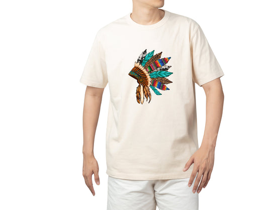 Native American Feather Head Dress T Shirt, Tshirt, Graphic T's 100% Cotton Tee, Motivational, Western