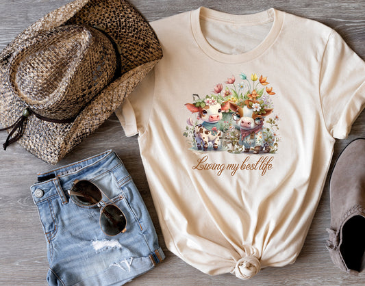 Living My Best Life Cows T Shirt, Tshirt, Graphic T's 100% Cotton Tee, Western