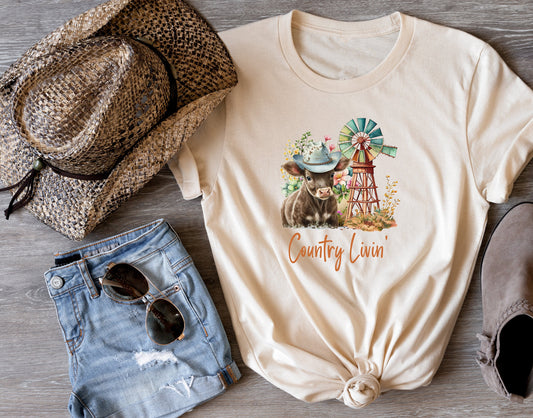 Country Livin' Highland Cow T Shirt, Tshirt, Graphic T's 100% Cotton Tee, Motivational, Western, Country Girl