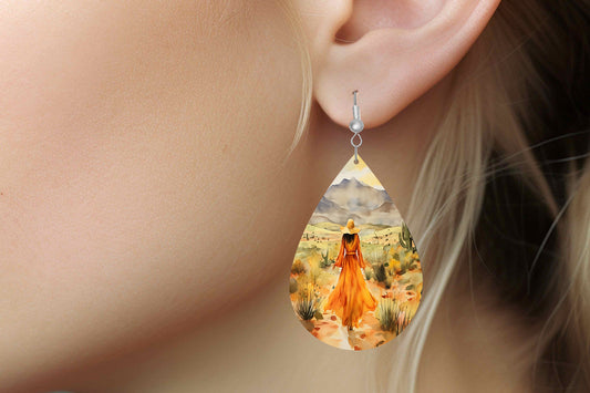 Desert Stroll Print Earrings Print Tear Drop Wood Dangle Earrings Hypoallergenic Jewelry