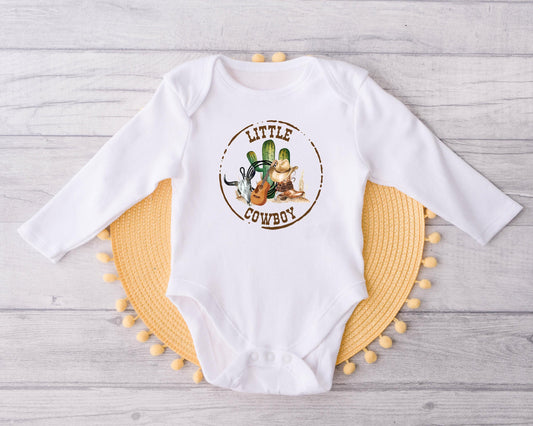 Baby Bodysuit, Round Little Cowboy One Piece Baby Suit, Baby Gift, Long / Short Sleeve, 0-18 Months size