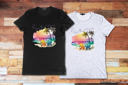 Enjoy the Moment T Shirt, Graphic Tee, Beach, Summer, Tshirt, 100% Cotton Black White or Gray