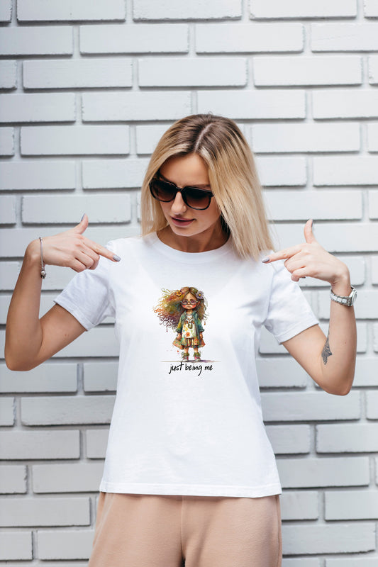 Just Being Me T Shirt, Graphic Hippie Boho, Tshirt, 100% Cotton Black White or Gray
