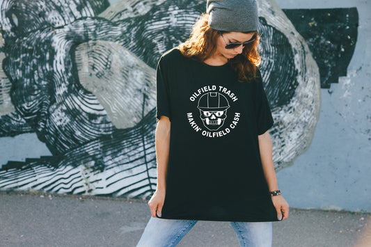 Oilfield Trash, T Shirt, Tshirt, Skull Graphic, Graphic T's 100% Cotton Black White or Gray, Tee