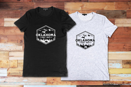 Oklahoma Badge, T Shirt, Tshirt, Graphic T's 100% Cotton Black White or Gray, Tee